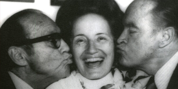 It was not to long before Bob ambled in. He was in his mid-90’s then. I say ambled because he was showing his age. His sight was failing too. But as he entered the room I could swear he was humming, “Thanks for the Memories,” his theme song. He greeted Fran warmly as only two people with more than 60 years of history can. Fran gifted Bob with Godiva chocolate. Hope eyed the box, glanced around for his wife Dolores who was no where in sight and broke the box open. “I am not supposed to have this Bob said, but hell if I won’t.” He preceded to have three. They quickly got to reminiscing and told story after story. Fran asked Bob if he remembered coming to Jacksonville University with Jack Benny in 1972. Bob cracked “he was old but not feeble, of course he remembered.” It was the only time those two titans of show business had ever appeared on a college campus. They gave a rollicking performance. Fran tried to get Hope to commit to making a return trip to Jacksonville, but Hope would have none of it. “It’s not the end of the world you know!” Fran said. As always, Bob would have the last word, “almost.”